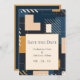 Modernes, geometrisch abstraktes Design mit Blues, Cremes "Save the Date" mit goldähnlichen Farbakzenten. Es ist perfekt für Ihre besondere Veranstaltung. Nur eine wunderschöne Karte für diese besondere Zeit in Ihrem Leben. Danke, dass du mir erlaubt hast, an deiner Freude teilzuhaben! 100% Kundenzufriedenheit mit "Zazzle"