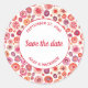 Wasserfarbene geometrische Kreise abstrakte Blume Malerei in warmen Juwelenfarben Rot, Orange, Rosa und lila. Herrlich koordinierende Save the Date Aufkleber als praktische Erinnerung für Ihre Gäste. Ändern Sie den Text für Ihre Feier.