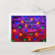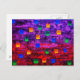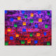 Postkarte mit einem modernen abstrakten, farbigen Acrylgemälde in lila, gelb, rot, grün und blau.