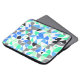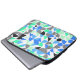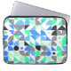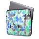 Dieser moderne Laptop-Ärmel weist bunte geometrische Muster in Schwarz, Blau und Grün auf Weiß auf.