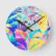 Moderne Abstrakte Blumenfarbe Runde Wanduhr