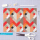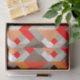 Zwirnpapier in einem modernen Design aus Schichtendreiecken in Orange-, Tomatenrot-, Pfirsich- und Steingrau/Grautönen, mit weißem Akzent
