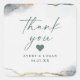 Moderne Abstrakte ätherische Aquarellfarbe Eukalyptus Grün Hochzeit Danke Stickers. Dieses moderne Design ist handbemalt und in kräftigen Farben gehalten, die sich perfekt für Sommer und Herbst eignen. Die Farbe Eukalyptus Wedding Color Palette zeigt Eukalyptus Green, Pine Dark Green, 24k Gold, Zaubertes Dunkles Navy Blau und Misty Mint Green. Mit Imitate Gold Metallic Glitzer-Folie Details, und einem wunderschönen Signatur-Script-Schriftart mit Schwänzen, die ätherische Aquarellfarben Hochzeitskollektion wird sicher Ihre Hochzeit unvergesslich und schön! Um mehr zu sehen, suchen Sie nach Chic Paperie's Hochzeitskollektionen 2021 für trendige Designs und Hochzeitsfarben Paletten für dieses Jahr.