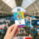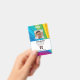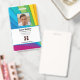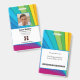 Abzeichen zur Mitarbeiteridentifizierung mit Vorlagen, die für Sie erstellt wurden. Der Hintergrund ist ein modernes abstrakte in einem Regenbogensonnenrennmuster.