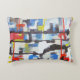Modernes, mehrfarbiges Abstraktes Kissen mit unterschiedlichen Designs auf beiden Seiten. Farbiges und lustiges Akzent Kissen. Vorderseite Bild von einem meiner Gemälde namens "Zerbrochene Stadtbesinnung". Mischen und mit anderen ähnlichen konstruierten Gegenständen wie Lampen, Rugs und mehr.