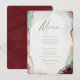 Moderne Abstrakte ätherische Watercolor Rot & Gold Hochzeitsmenüs. Dieses moderne Design ist handbemalt und in kräftigen Farben gehalten, die sich perfekt für den Winter eignen. Die Farbpalette der Wine Wedding Color ist in den Farben Dark Wine Red, Castle Gray, Pearl Pale Pink, Old Gold und Cascade Aqua Aquamarin. Mit Imitats Metallic Glitzer Folie Details und einem wunderschönen Signatur-Script-Schriftart mit Schwänzen, die ätherische Aquarellfarben Hochzeitskollektion wird sicher Ihre Hochzeit unvergesslich und schön! Um mehr zu sehen, suchen Sie nach Chic Paperie's Hochzeitskollektionen 2021, um mehr trendige Designs und Hochzeitsfarben für dieses Jahr zu sehen.
