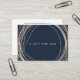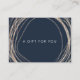 Navy Hintergrund mit Imitaten goldene Kreise und ein elegantes Schriftart Sprichwort "Geschenk für Sie" auf der Vorderseite und alle Ihre Informationen auf der Rückseite in einem serifenlosen Schriftart bereit für schnelle und einfache Anpassung.