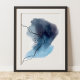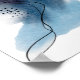 Eine zeitgenössische, moderne abstrakte Kunstillustrierung, die eine Aquarelltinte in verschiedenen Blautönen mit Farbspritzen in Blau und Schwarz und zwei schwarzen Wellenlinien aufweist. Ein schlichter, aber eleganter zeichn.