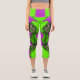 Moderne Abstrakte Neon Pink Green Fraktal Blume Capri Leggings