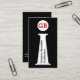 Abstrakte Visitenkarten in schwarz-weißer Farbe, die eine weiße Spalte auf schwarzem Hintergrund darstellen. Über der Spalte befindet sich ein Kreis mit roten Monogrammen/Initialen. Personalisieren Sie es mit Ihrem Text und fügen Sie Ihr Logo hinzu. Eine minimalistische Visitenkarte mit beruflichem Look.