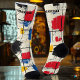 Entspannen Sie mit modernen abstrakten Socken mit fetten Pinselstrichen in Rot, Blau, Gelb und Schwarz vor einem cremefarbenen Hintergrund. Das strukturierte geometrische Gitter verleiht dem lebendigen, künstlerischen Design eine zeitgenössische Touch. Diese Socken sind perfekt für Kunstliebhaber und Fashion-Liebhaber geeignet und bringen einen kreativen Flair in jedes Outfit.