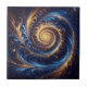 Moderne Abstrakte Space Royal Blue und Gold Wirbel Fliese