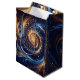 Moderne Abstrakte Space Royal Blue und Gold Wirbel Mittlere Geschenktüte