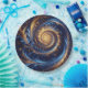 Ein Schwirl königsblauer und goldener Farben, inspiriert durch den Zauber des Raumes in diesem modernen Kunstdesign.