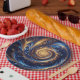 Moderne Abstrakte Space Royal Blue und Gold Wirbel Pappteller