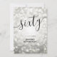 Elegantes Glam Silver Glitzer Lights 60. Geburtstagsskript Alles in einer Einladungs-Vorlage mit funkelnden Lichtern und modernen Typografie-Skripten.