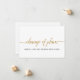 Manchmal müssen Hochzeiten verschoben werden. Frag deinen Gästen, ihr Hochzeitstag mit diesem schlicht eleganten Design zu ändern, das die Worte "Planänderung" in der modernen Goldskripttypografie vorn mit der Botschaft und den Namen auf der Rückseite kombiniert.