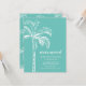 Tropisch bewegende Ankündigung mit einem Set aus Palmen auf einem aquablauen Hintergrund mit einem passenden Rücken.