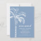Tropisch bewegende Ankündigung mit einem Set aus Palmen auf blauem Hintergrund mit passendem Rücken.