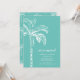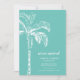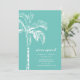 Tropisch bewegende Ankündigung mit einem Set aus Palmen auf einem aquablauen Hintergrund mit einer passenden Palme zurück.