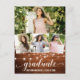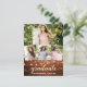 Moderne 4 Foto Abschluss Ankündigung Postcard - Kalligraphie, rustikales Holz und String Lights