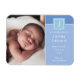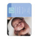 Moderner Magnet für die Ankündigung der Geburt eines kleinen Fotos in Monogramm, um Ihren wunderschönen Neugeborenen vorzustellen. Mit einem Baby Foto, monogramm Erstgeburtsstatistiken und Nachrichten auf zwei weichen blauen Paneelen.