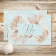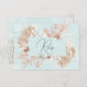 Das Design der Hochzeitskarte zeichnet sich durch einen schönen türkisblauen Hintergrund aus, der mit einem Unterwassergefühl versehen ist. Es ist von staubigen blauen, bräunlichen, braunen, pfirsichfarbenen und weißen Muscheln, Korallen und Meereslebewesen umgeben. Ideal für die Ziel- oder Strandhochzeit. Erstellt von der einfachen Farmhouse Press.