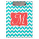 Moderne Aqua Coral Zickzack Zig Zag Streifen Stoffmuster Muster Monogram Initial Clip Board Personalisiert