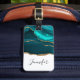 Moderne Aquamarine Agate & Gold Ribbon auf Weiß Gepäckanhänger