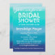 Dieses stilvolle moderne Ausrüstungsbeschreibungen ein Ozean Watercolorhintergrund mit Schatten von Blauem und von aquamarinem. Personifizieren Sie die Details von diesem einladen mit Ihrem Brautparty-Party. Es gibt auch viel des Raumes auf der Rückseite zu Information. Klicken Sie einfach an besonders anfertigen es Knopf, um Text zu addieren.