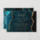 Moderne Aquamarine Blue-Gold-Agate-Script-Hochzeit Begleitkarte