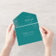 Die links Kulisse dieses eleganten und modernen All-in-One-Hochzeitseinladens und UAWG besticht durch einen silbernen Imitat-Glitzer. Der anpassbare Text kombiniert silbergraue, weißliche Handschrift, Kupferplatte und kursiv Schriftart auf aquamarinem, blauen Hintergrund. Die Rücksendeadresse erscheint auf der Außentafel und auf der Rückseite der abnehmbaren RSVP-Karte in silbergrauem Text auf festem aquamarin.