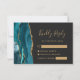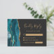 Moderne Aquamarine Gold Agate Dark Wedding RSVP Ca Karte