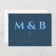 Zeitgenössische Aquamarine Monogramm Save the Date. Hochzeit. Vor- und Nachnamen. Modern. Einfach. Postkarte.
