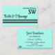 Moderne Aquamarine schwarze Streifen mit Monogram Visitenkarte