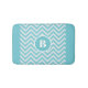 Personalisieren Sie diese aquamarine monogramm Baby Kinderzimmer Badematte mit dem Brief Ihrer Wahl. Ideal für ein Kinderzimmer oder ein Kinderzimmer. Das Design zeichnet sich durch ein aquamarines Zickzack Muster mit einem aquamarinen Kreismonogramm und einem Buchstaben aus.