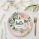 Moderne Aquarell-Blume & Hallo & Name Pappteller