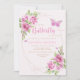 Moderne Aquarell Pink Butterfly Girl Babydusche Einladung