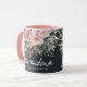 Moderne Aquarellblumen Drehbuch elegante Oma Tasse rosa mädchenhafte Design. Auf dem Trend Blumen, Blätter wunderschönes botanisches Design. Teil einer modernen Sammlung.