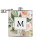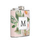 Moderne Aquarellfarben Rosa Blume Mit Monogramm Flachmann
