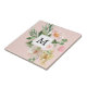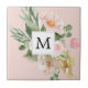 Moderne Aquarellfarben Rosa Blume Mit Monogramm Fliese
