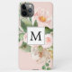 Moderne Aquarellfarben Rosa Blume Mit Monogramm iPhone Hülle
