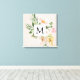 Moderne Aquarellfarben Rosa Blume Mit Monogramm Leinwanddruck