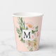 Moderne Aquarellfarben Rosa Blume Mit Monogramm Pappbecher