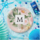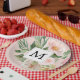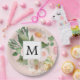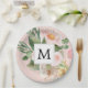Moderne Aquarellfarben Rosa Blume Mit Monogramm Pappteller