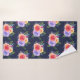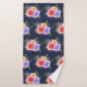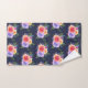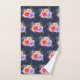 Gemusterte Handtücher mit einem hübschen Bouquet aus Aquarellfarben-Rose mit Sprigs, Blätter und Ästen, die alle in einer farbenfrohen Blumengestalt zusammengehalten sind. Navy Hintergrund.
