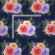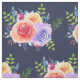 Gemusterte Stoffe mit einem hübschen Blumenstrauß aus Aquarellfarben-Rose mit Sprigs, Blätter und Ästen, die alle in einer farbenfrohen Blumengestalt zusammengesetzt sind. Navy Hintergrund.