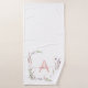 Dieses elegante und schicke Handtuchdesign besticht durch handbemalte Aquarellmotive. Der Name und das Monogramm sind in rosa und weich gefliesten Korallenrosa und in handgeschriebener Schriftzypografie zu sehen. Copyright Anastasia Surridge für Personalisierte Wohngestaltung, alle Rechte vorbehalten.