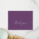Diese moderne Aquarell-Koordinate lila Dankeschön-Karte ist perfekt für eine stilvolle zeitgenössische Hochzeit. Das lila und weiße Pflaumendesign zeichnet sich durch eine einzigartige, industrielle Schrift mit modernem Bohustyp aus. Anpassbar in jeder Farbe. Behalt das Design minimal und elegant, wie es ist, oder personalisiere es durch Hinzufügen von eigenen Grafiken und Kunstwerken. Personalisieren Sie die Rückseite der Karte mit Ihren Namen, und eine Dankeschön-Nachricht. Alternativ können Sie den Bereich Dankeschön Meldungsvorlage leer verlassen werden, um eine personalisierte Notiz auf jeder Karte nach ihrer Ankunft zu schreiben. Diese Karten können für eine Hochzeit, ein Brautparty oder eine besondere Veranstaltung verwendet werden.