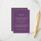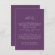 Diese moderne Aquarellkarte, die lila Hochzeitsdetails koordiniert, eignet sich perfekt für eine zeitgenössische Hochzeit. Das lila und weiße Pflaumendesign zeichnet sich durch eine einzigartige, industrielle Schrift mit modernem Bohustyp aus. Anpassbar in jeder Farbe. Behalt das Design minimal und elegant, wie es ist, oder personalisiere es durch Hinzufügen von eigenen Grafiken und Kunstwerken.